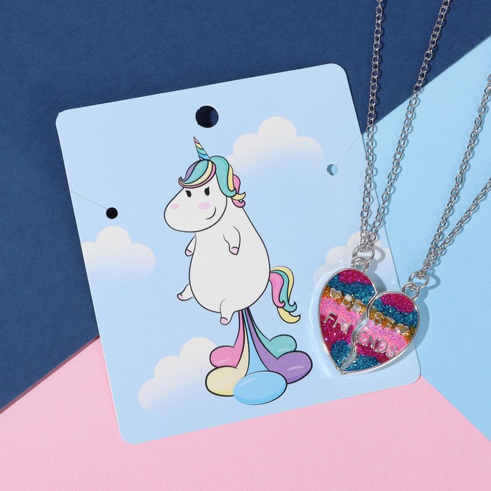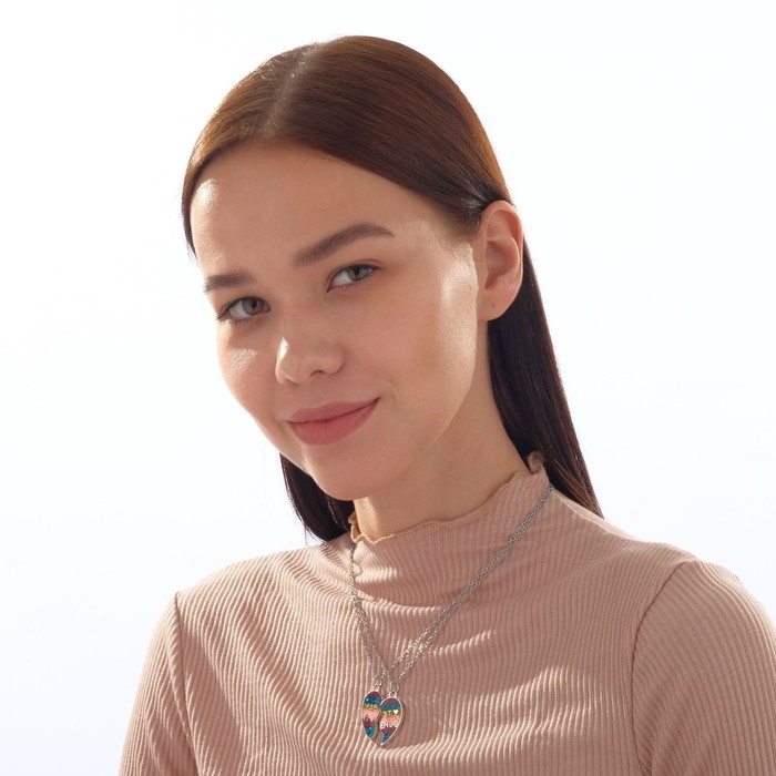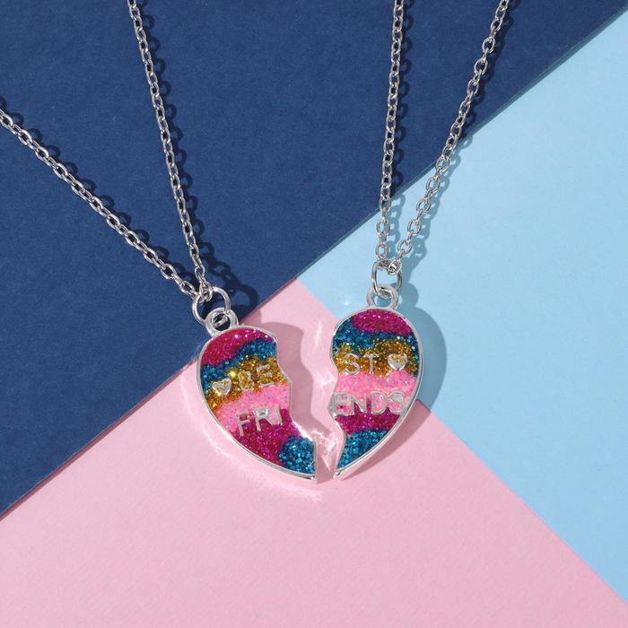 Кулоны «Неразлучники» яркое сердце, цветные в серебре, 45 см