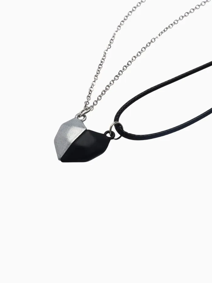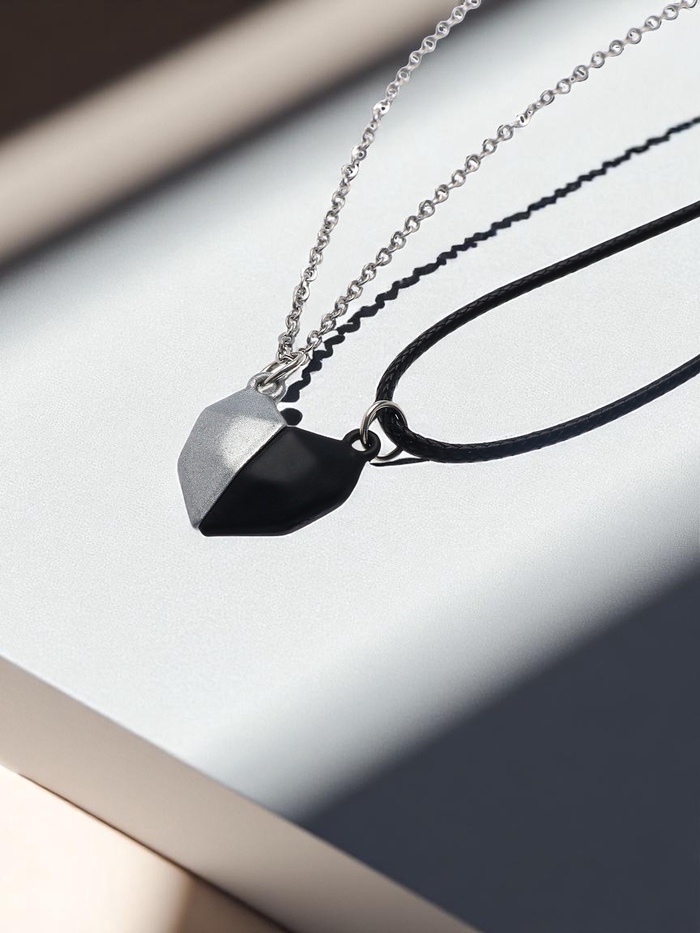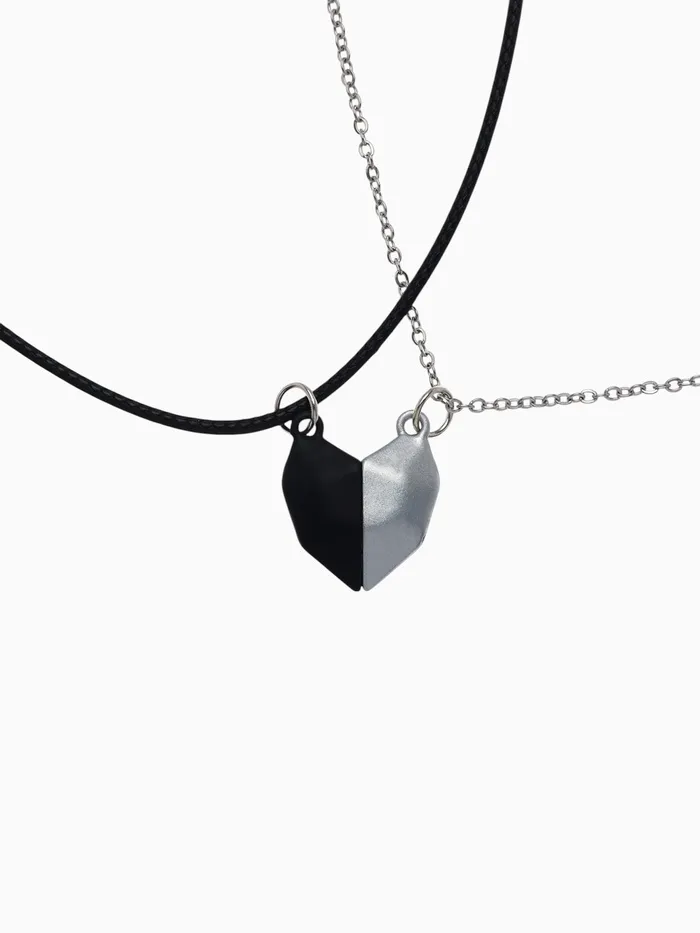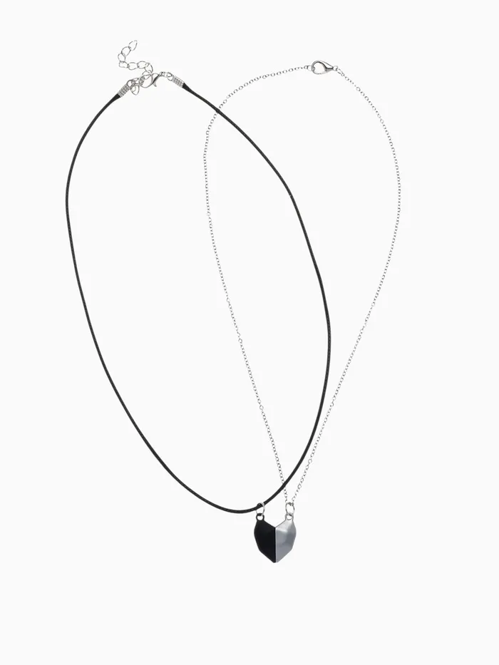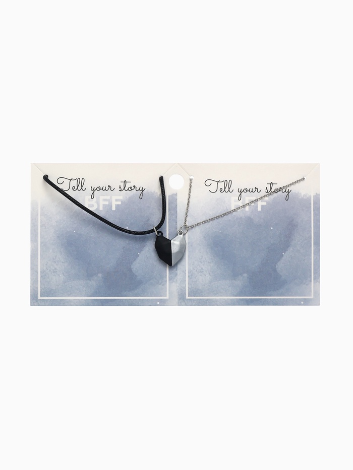 Кулоны «Неразлучники» на магните, половинки сердца, цвет чёрно-серебряный, 48 см — Характеристики