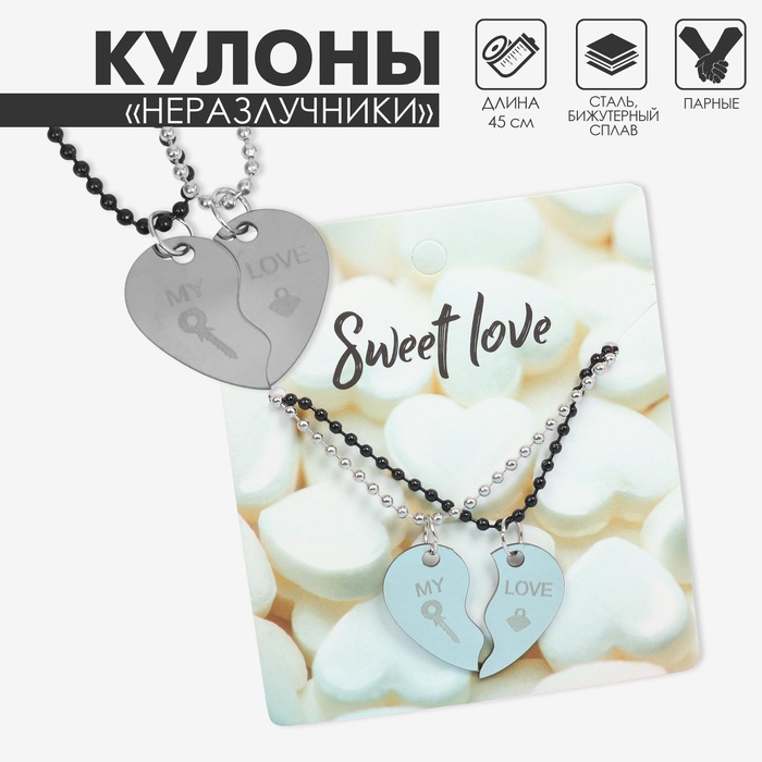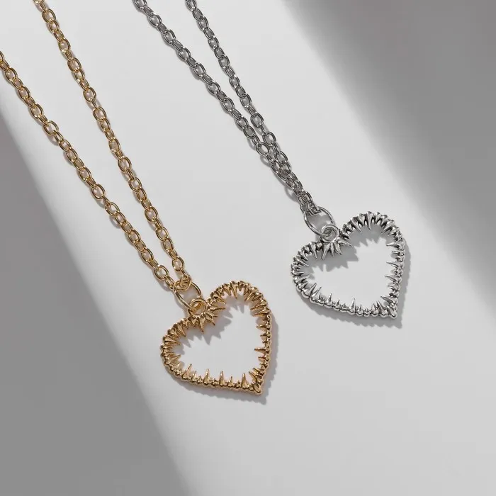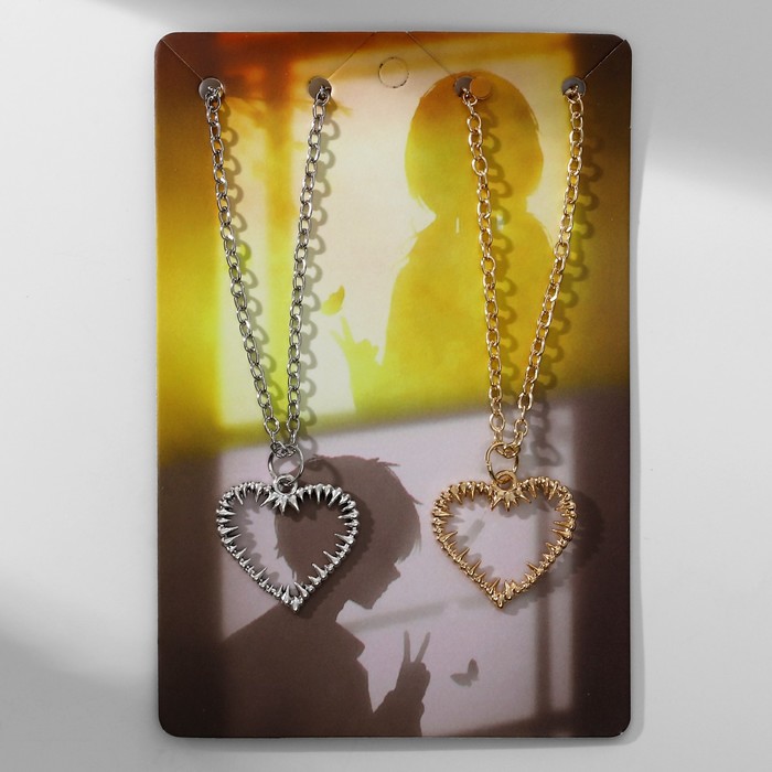 Кулоны «Неразлучники» сердца с шипами, цвет серебряно-золотой, 45 см — Характеристики