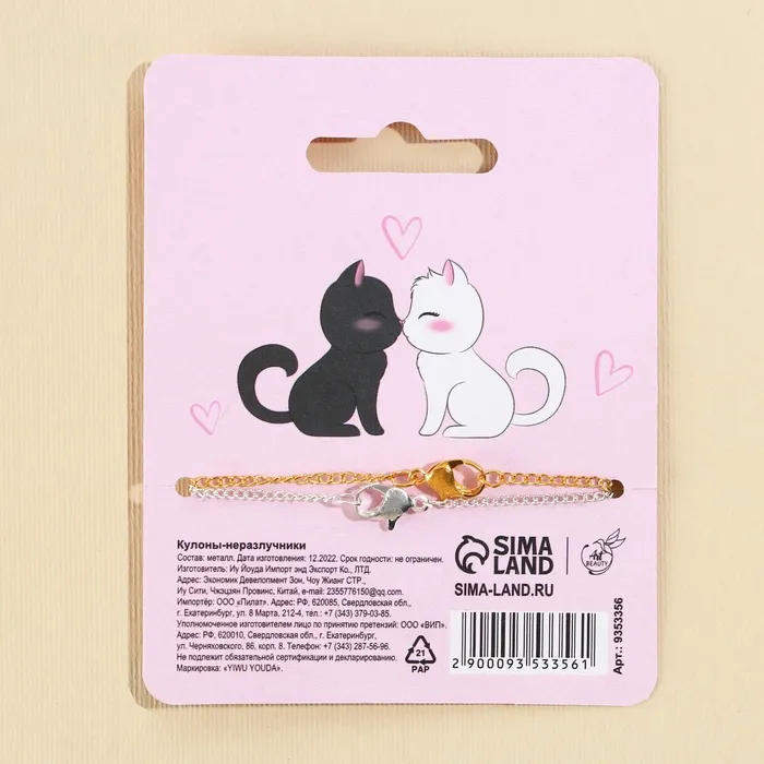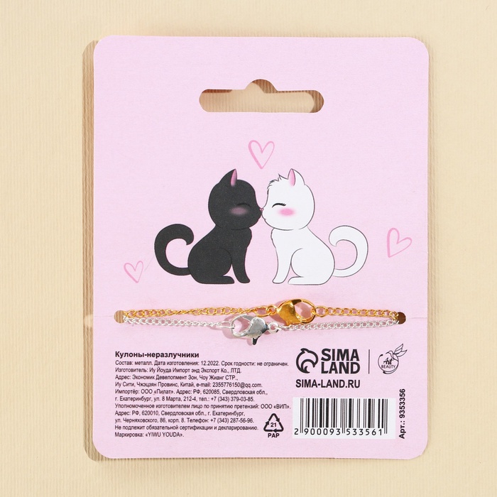 Кулоны неразлучники «Тому кого люблю», 2 шт, длина 40 см — Характеристики