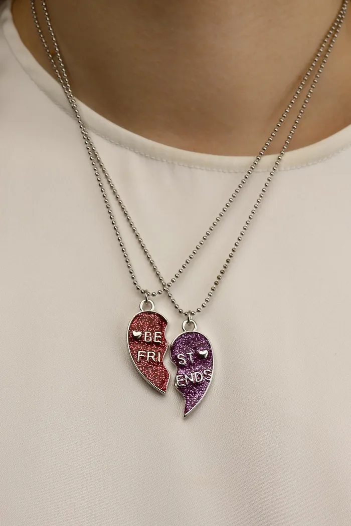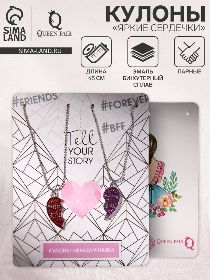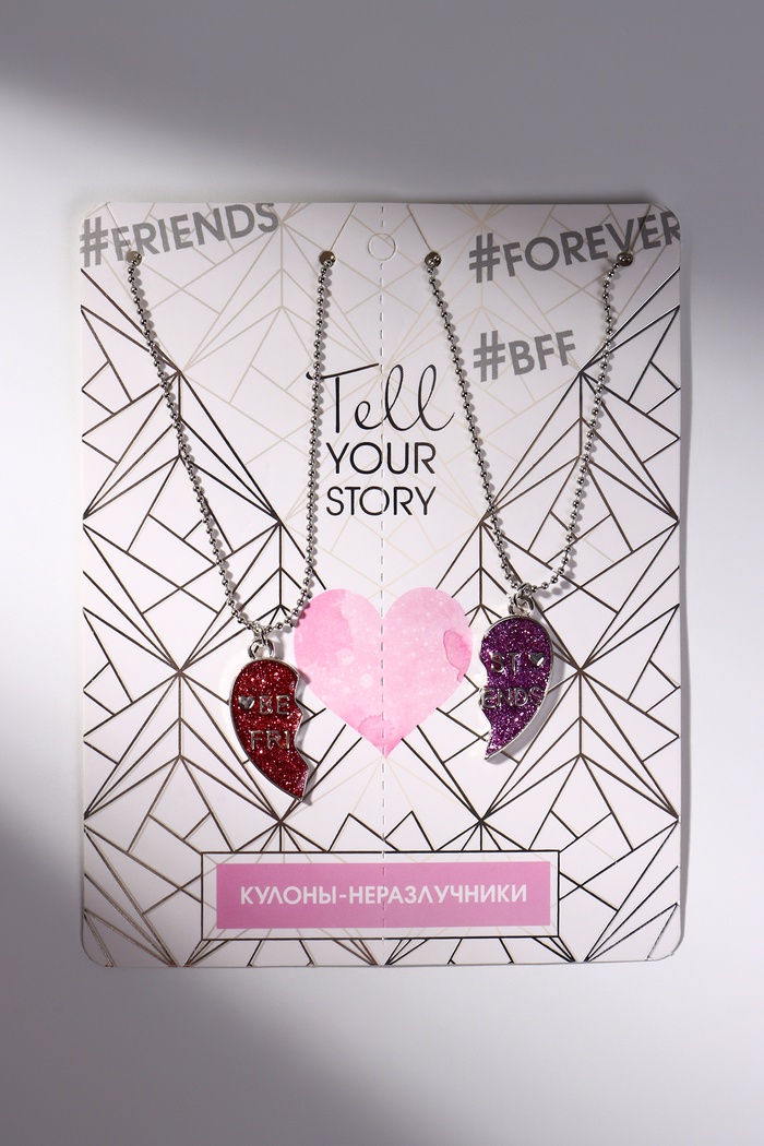 Кулоны парные «Яркие сердечки», 45 см, цвет розовый/фиолетовый в серебре — Характеристики