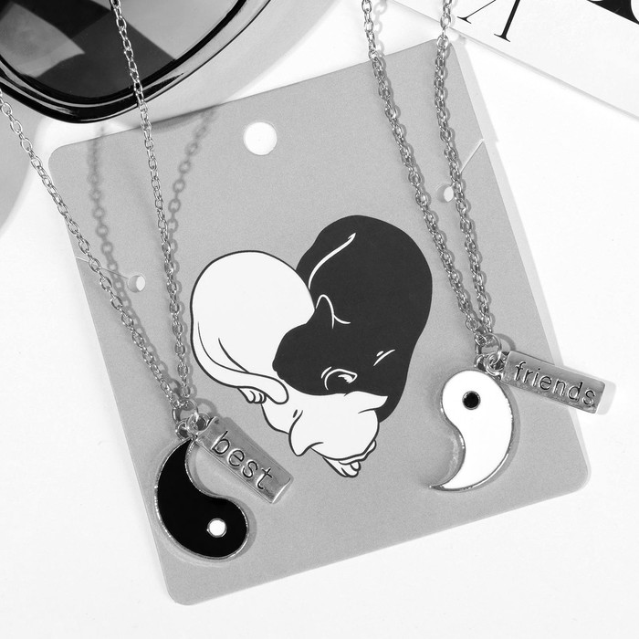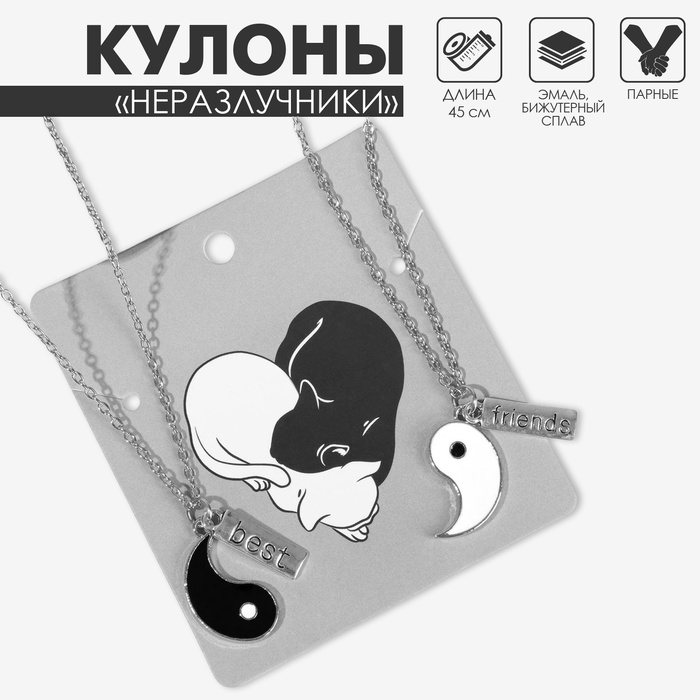 Кулоны парные «Инь ян», дружба, 45 см, цвет чёрный/белый в серебре — Характеристики