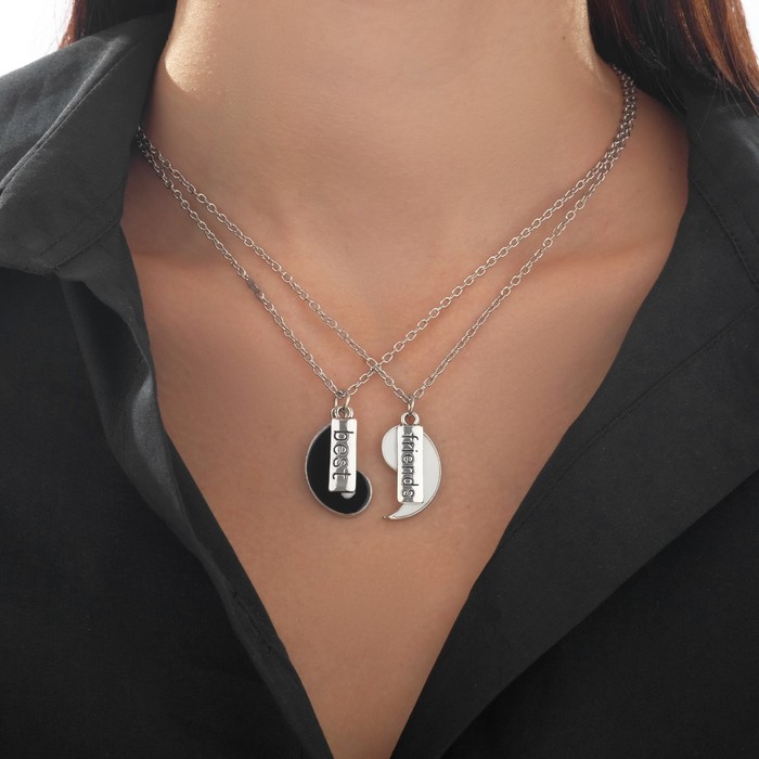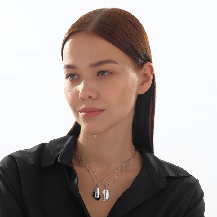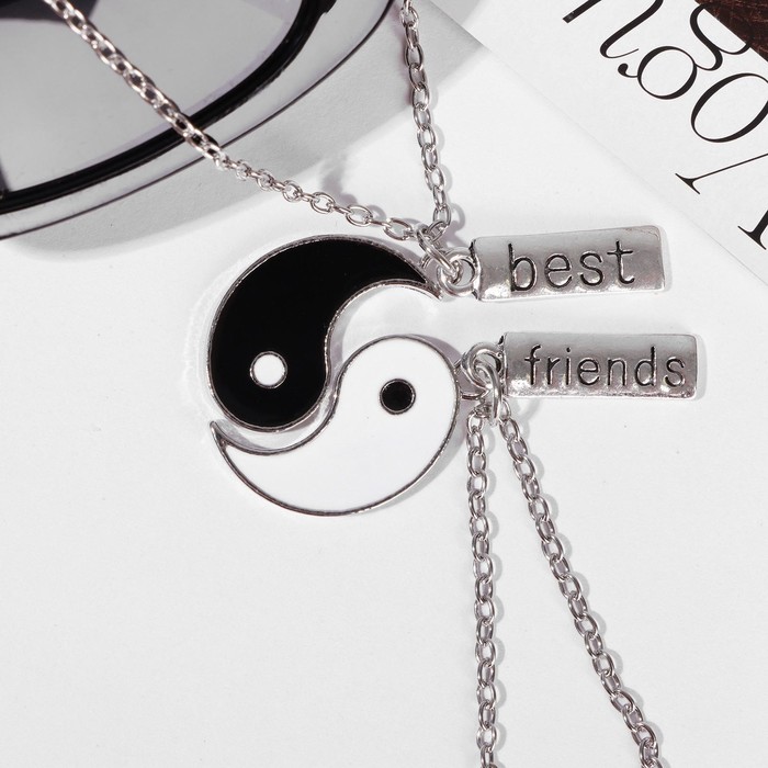 Кулоны парные «Инь ян», дружба, 45 см, цвет чёрный/белый в серебре