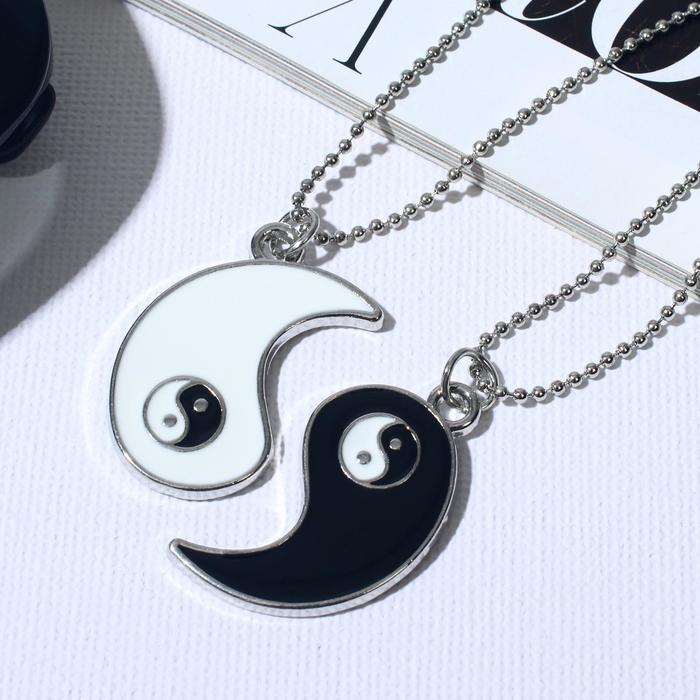 Кулоны парные «Инь ян капли», 45 см, цвет чёрный/белый в серебре — Характеристики