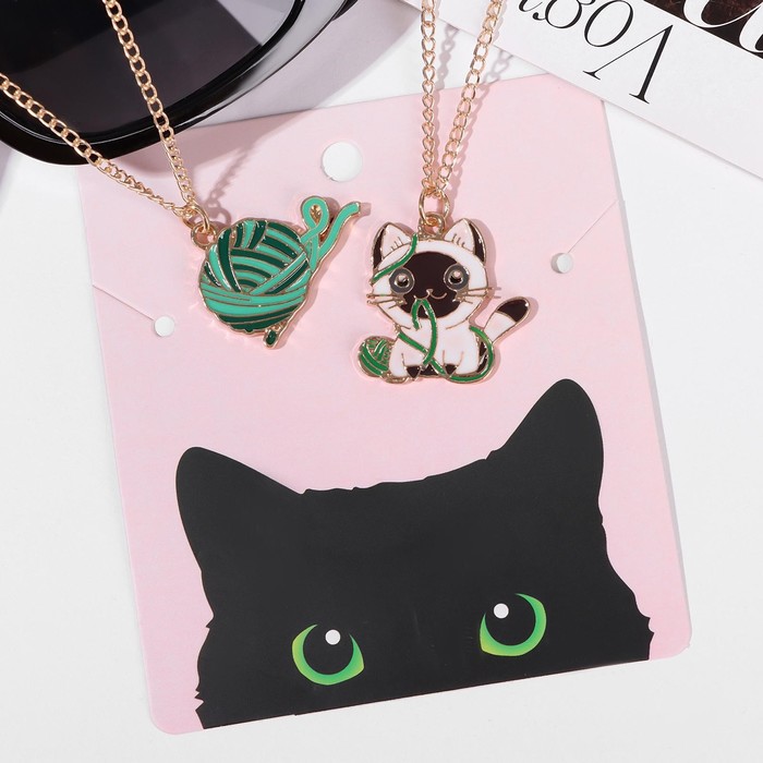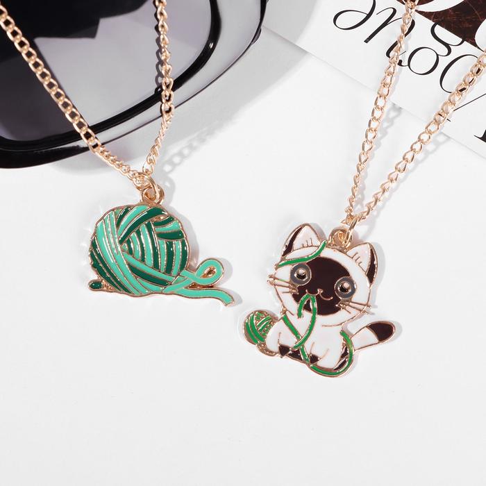 Кулоны парные «Котик с клубочком», 45 см, цветные в золоте