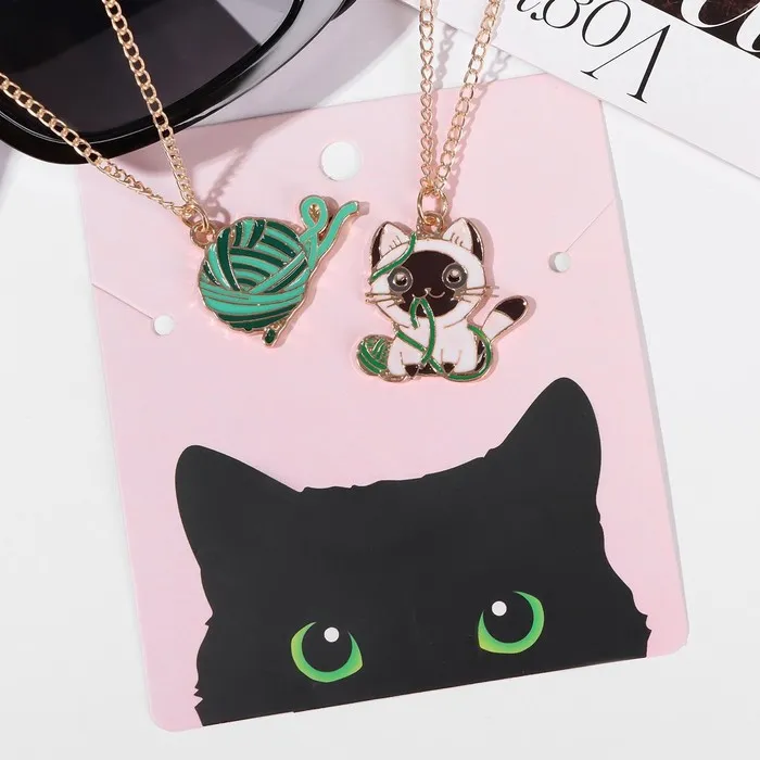 Кулоны парные «Котик с клубочком», 45 см, цветные в золоте — Характеристики