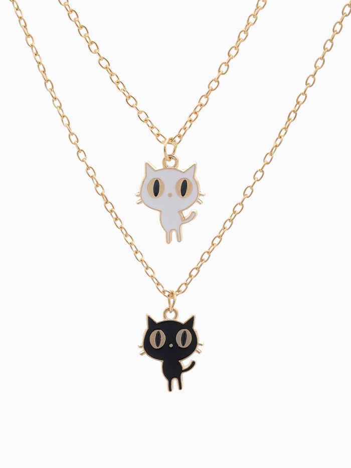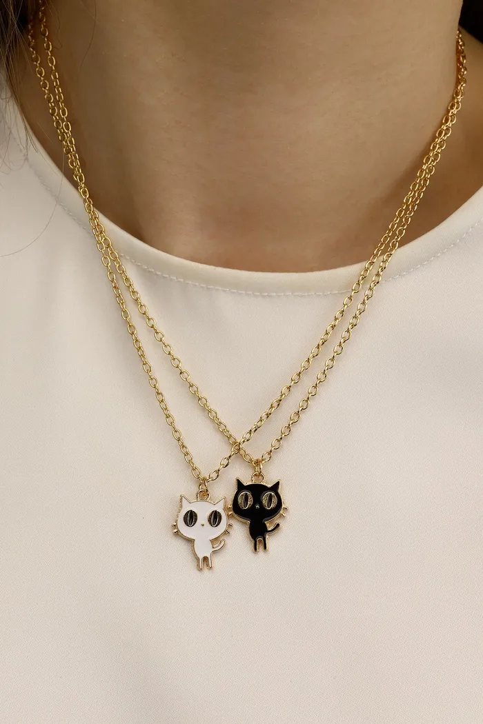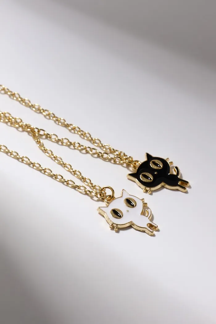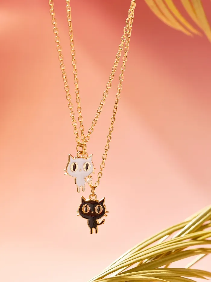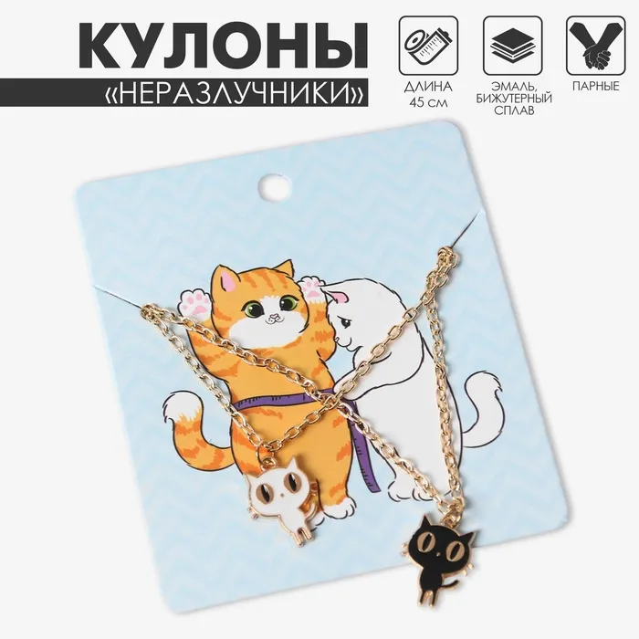 Кулоны парные «Котики», цвет чёрный/белый в золоте, 45 см — Характеристики