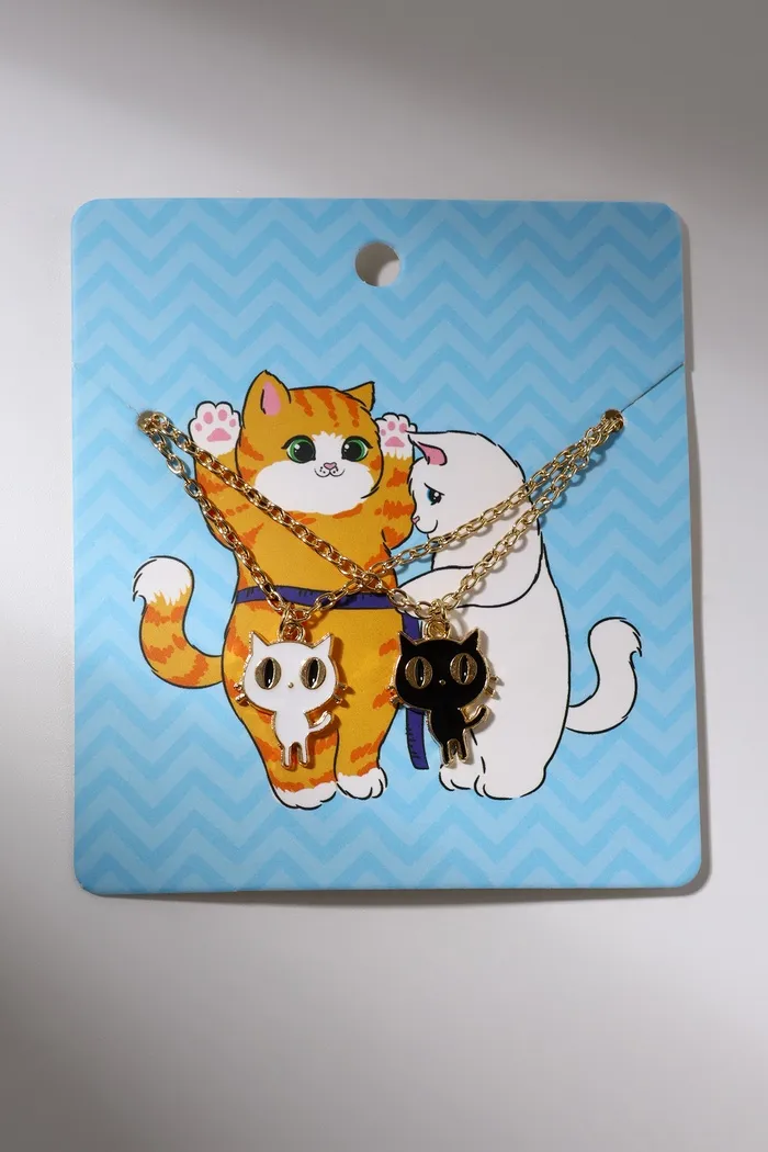 Кулоны парные «Котики», цвет чёрный/белый в золоте, 45 см