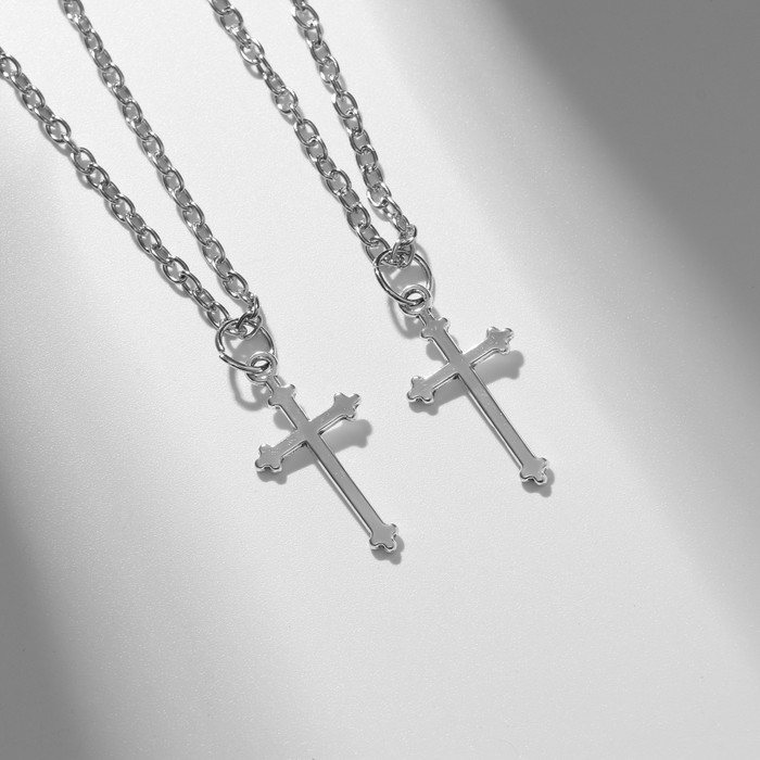 Кулоны парные «Крестики», 45 см, цвет серебро