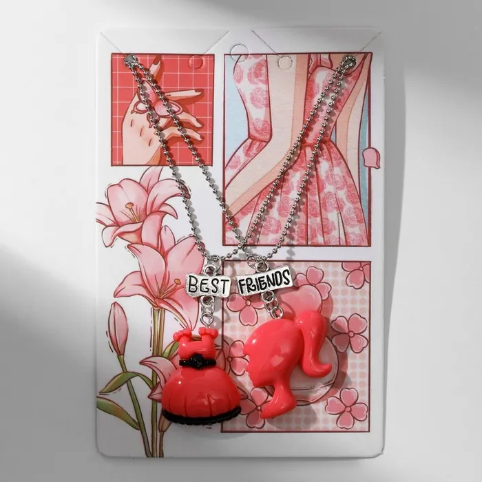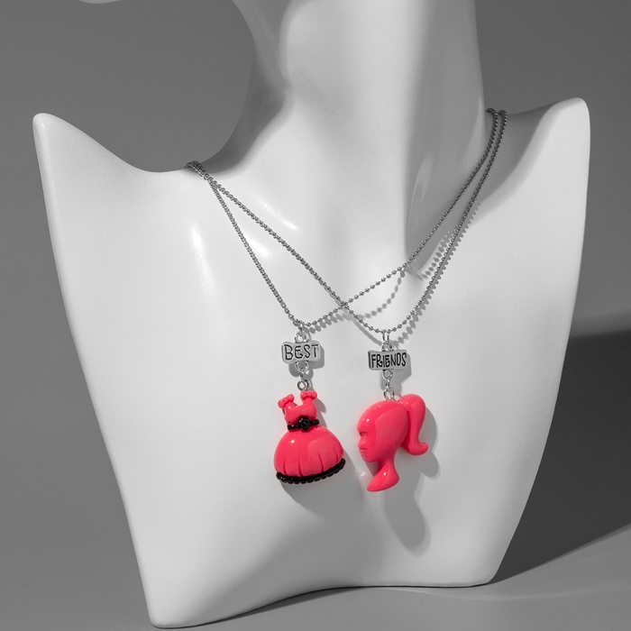Кулоны парные «Кукла и платье», 40 см, цвет розовый в серебре — Характеристики