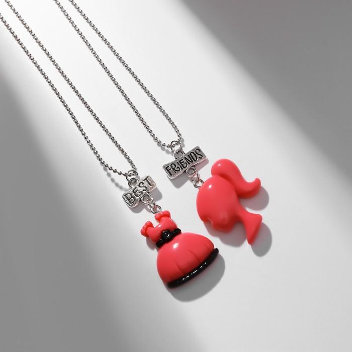 Кулоны парные «Кукла и платье», 40 см, цвет розовый в серебре