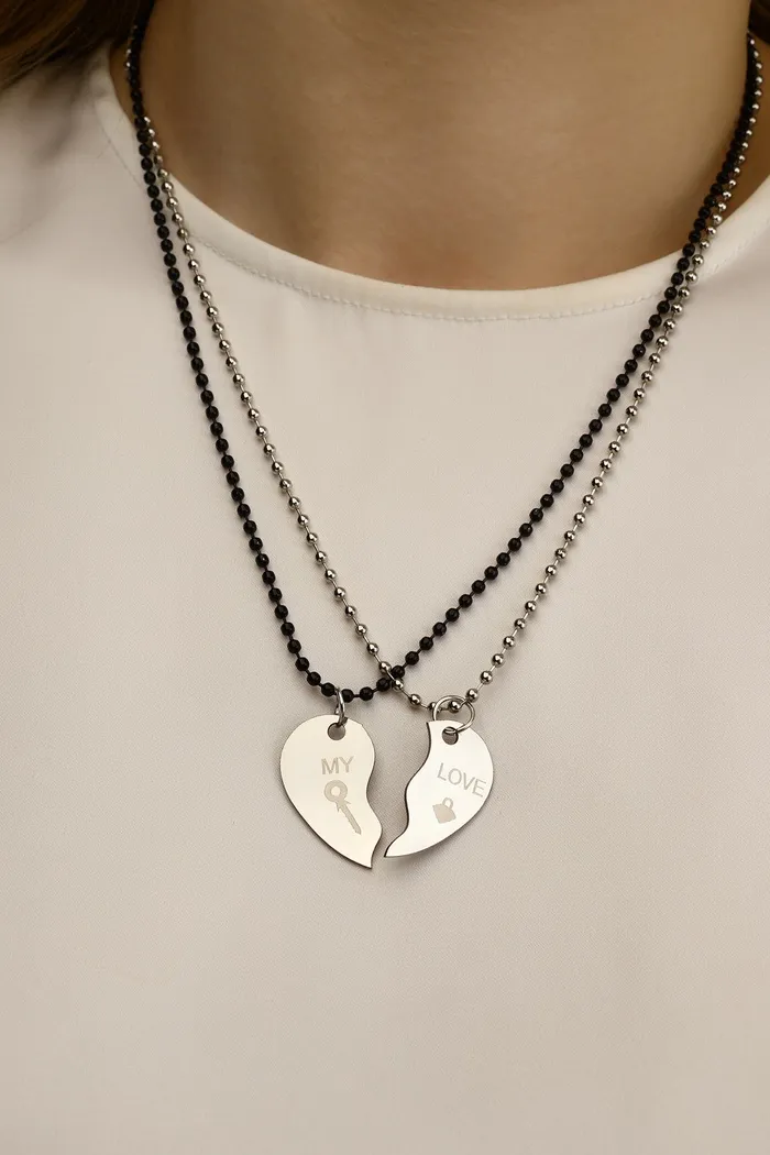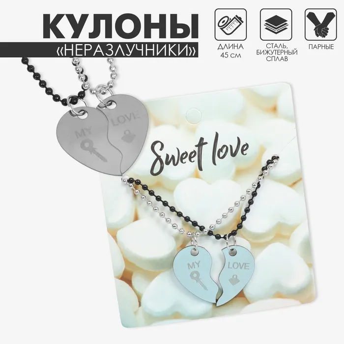 Кулоны парные «Love», 45 см, цвет чёрный/серебряный — Характеристики