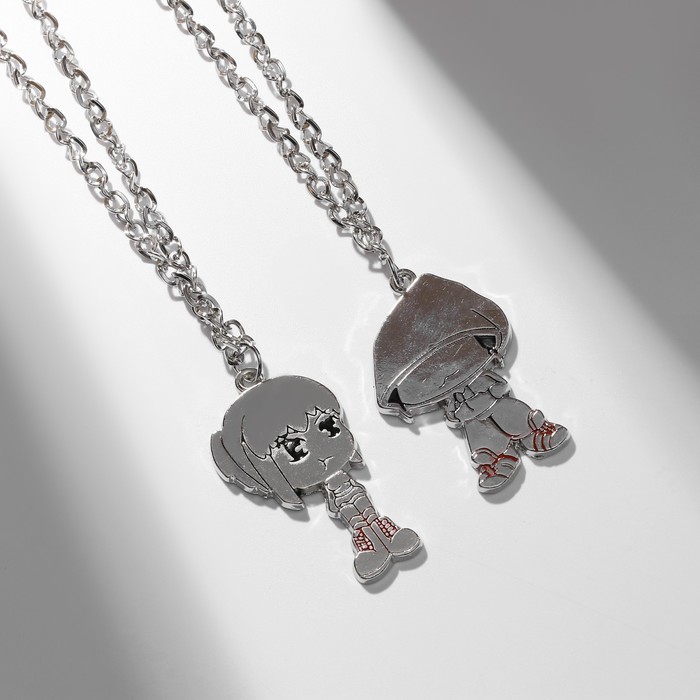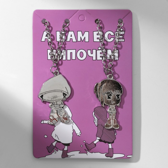 Кулоны парные «Мальчик и девочка», 45 см, цвет серебро
