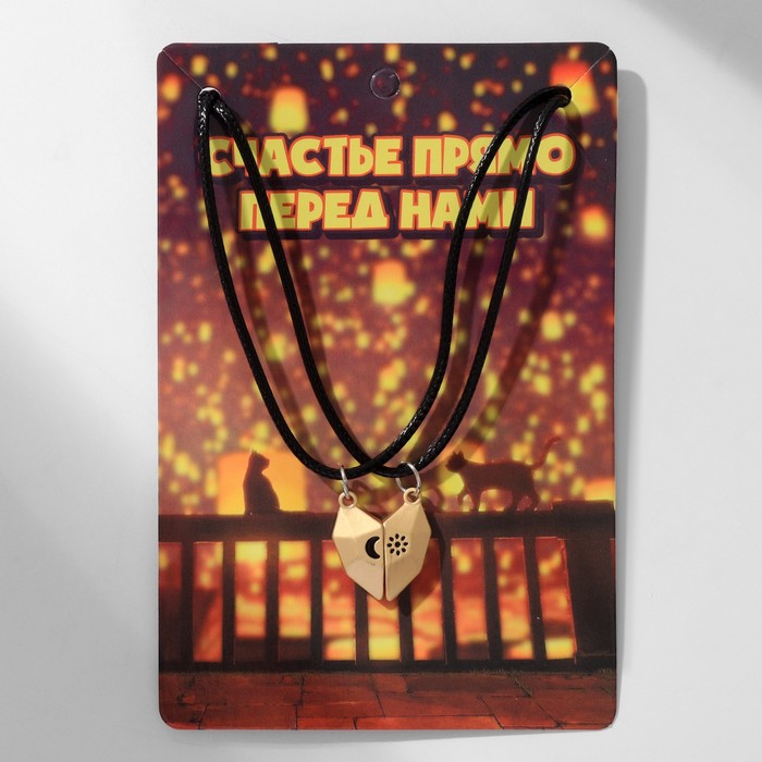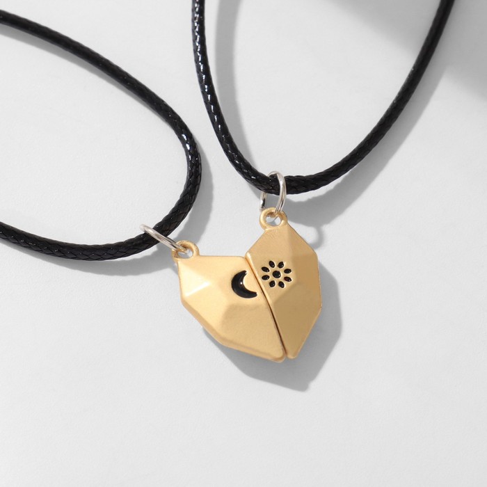 Кулоны парные на магните «Месяц и солнце в сердце», 40 см, цвет золото