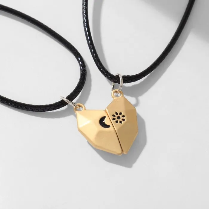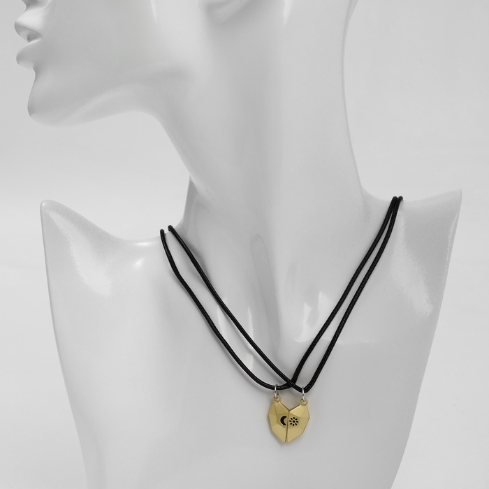Кулоны парные на магните «Месяц и солнце в сердце», 40 см, цвет золото — Характеристики