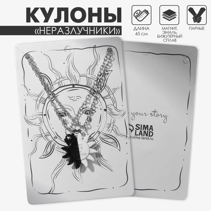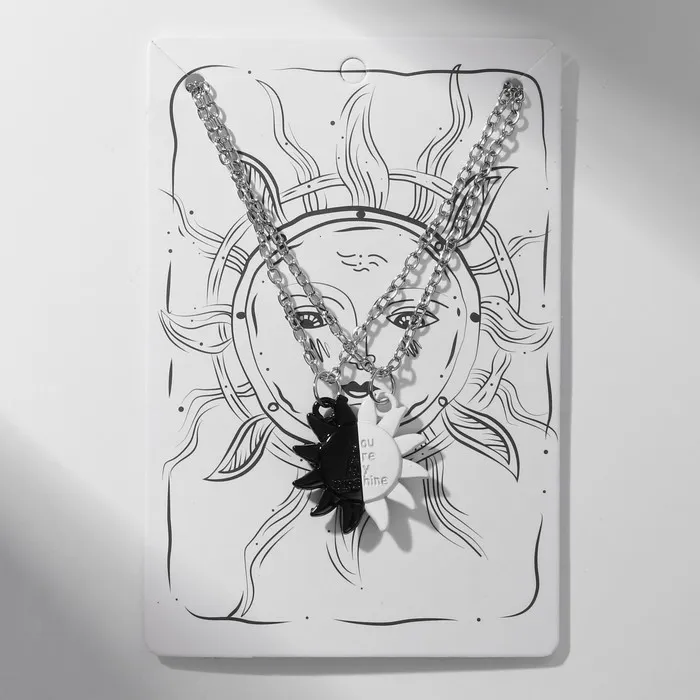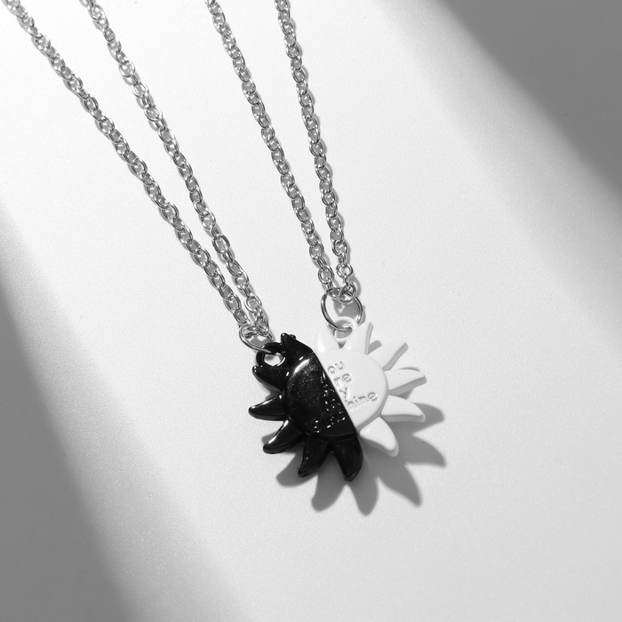 Кулоны парные на магните «Солнце», 45 см, цвет белый/чёрный в серебре — Характеристики