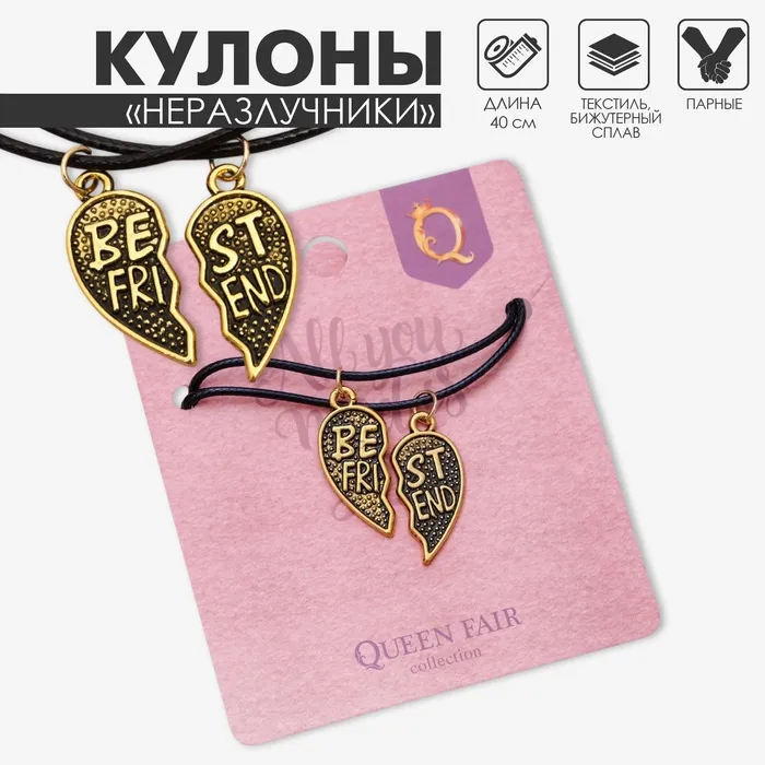 Кулоны парные на шнурке Best friends, цвет чернёное золото, 40 см — Характеристики