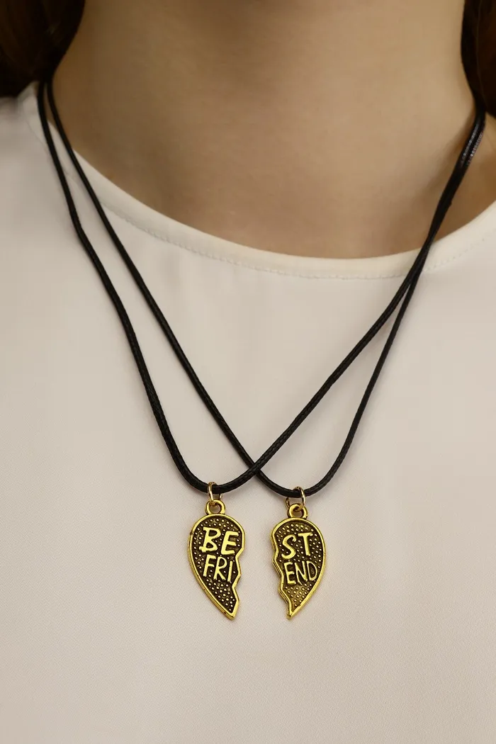 Кулоны парные на шнурке Best friends, цвет чернёное золото, 40 см