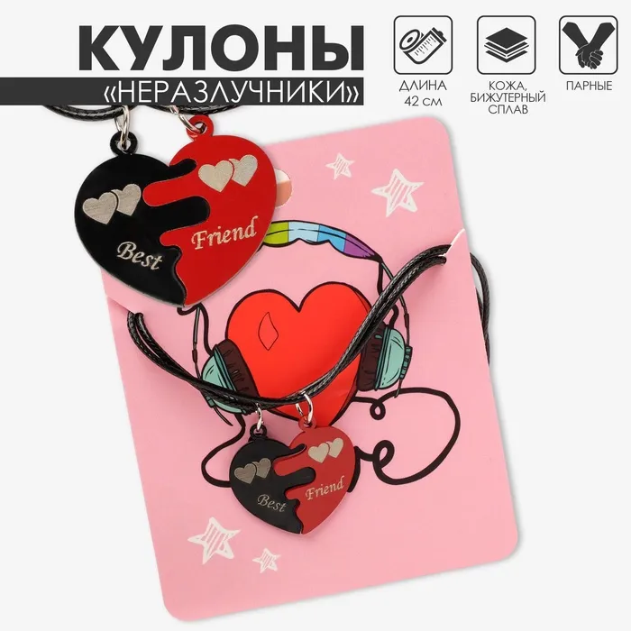 Кулоны парные на шнурке «Love», 42 см, цвет красный/чёрный — Характеристики