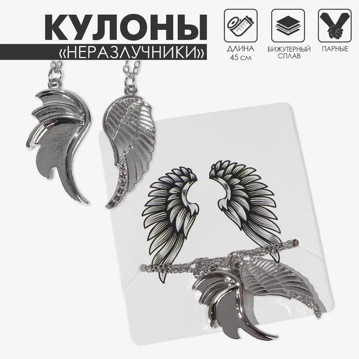 Кулоны парные на цепочке «Два крыла», 45 см, цвет серебро — Характеристики