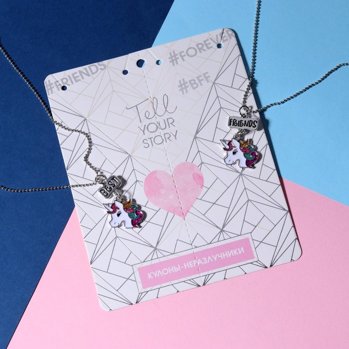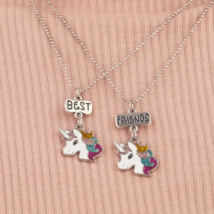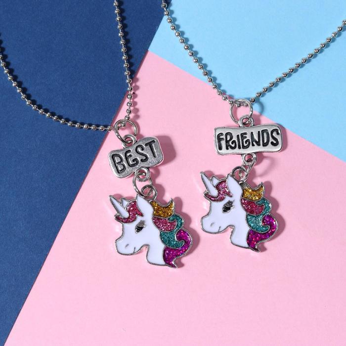 Кулоны парные на цепочке «Единороги», надпись best friends, цветные в чернёном серебре, 45 см — Характеристики