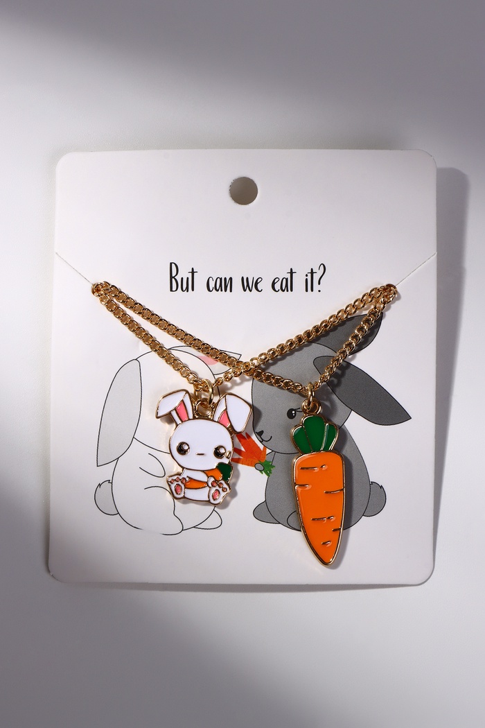 Кулоны парные на цепочке «Морковка с зайцем», 45 см, белые, оранжевые в золоте