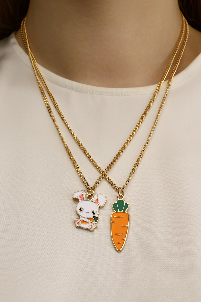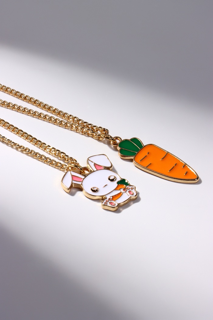 Кулоны парные на цепочке «Морковка с зайцем», 45 см, белые, оранжевые в золоте — Характеристики