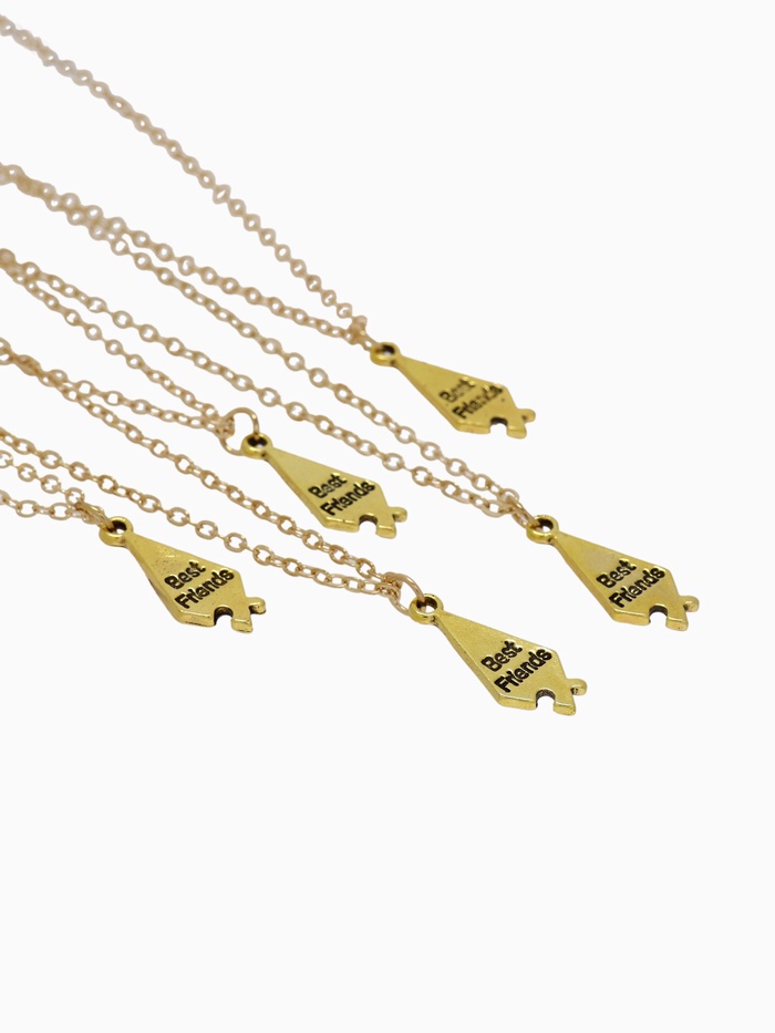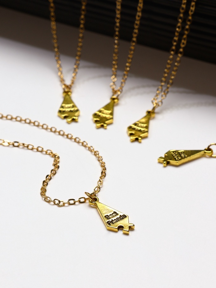 • Пять кулонов в виде пазлов с надписью создают эффект соединения и символизируют близость.