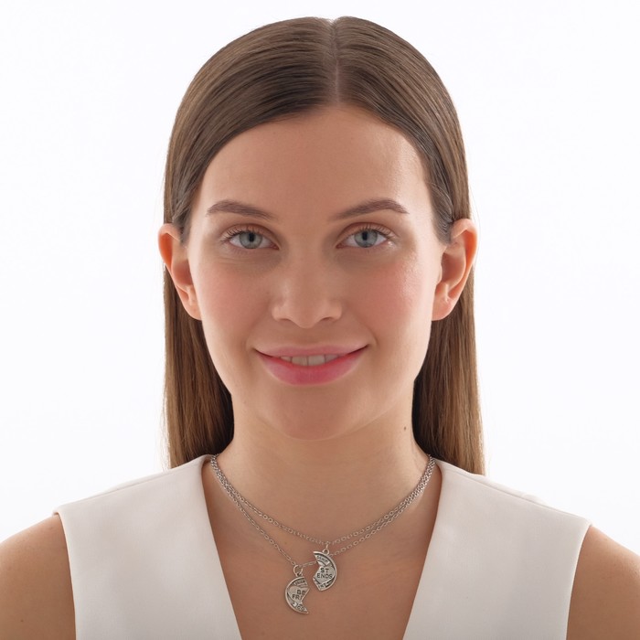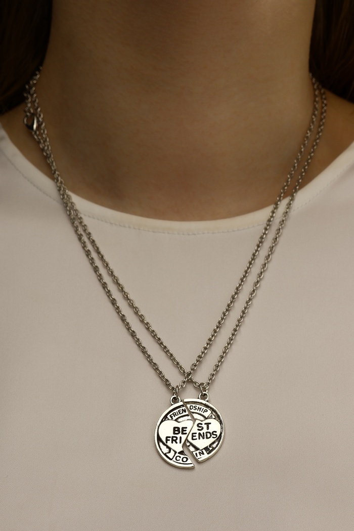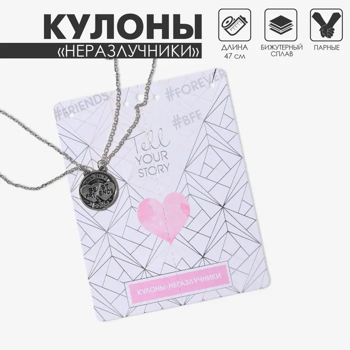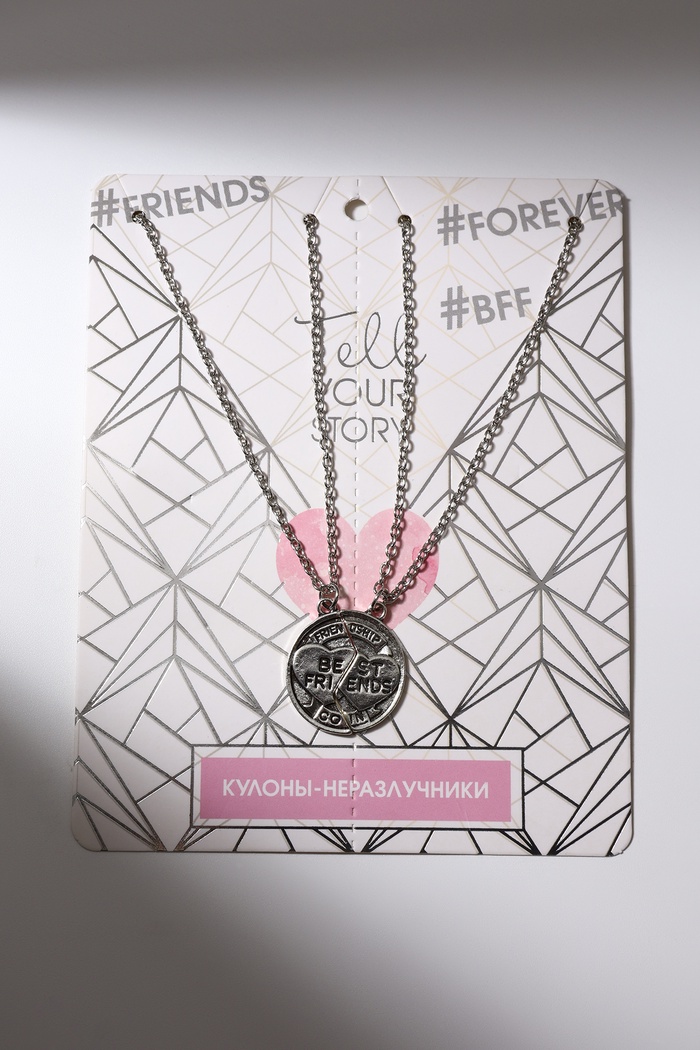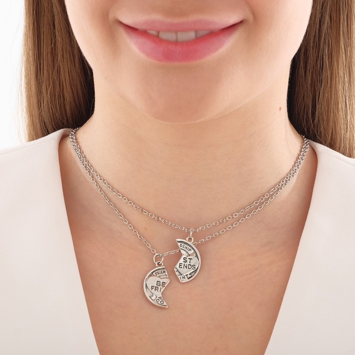 Кулоны парные на цепочке «Неразлучники» с надписью best friends, круг, цвет чернёное серебро, 47 см — Характеристики