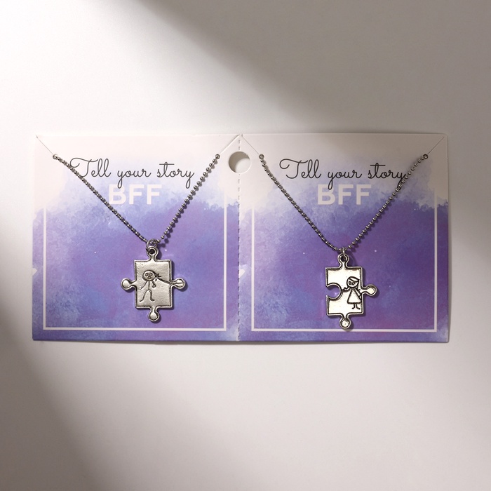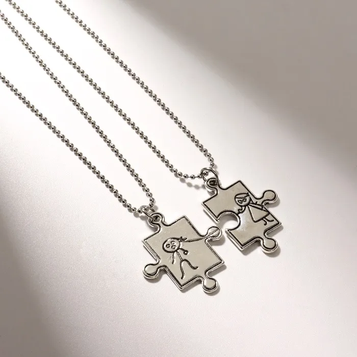 Кулоны парные на цепочке «Пазлы», 45 см, цвет чернёное серебро