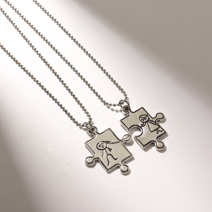 Кулоны парные на цепочке «Пазлы», 45 см, цвет чернёное серебро — Характеристики