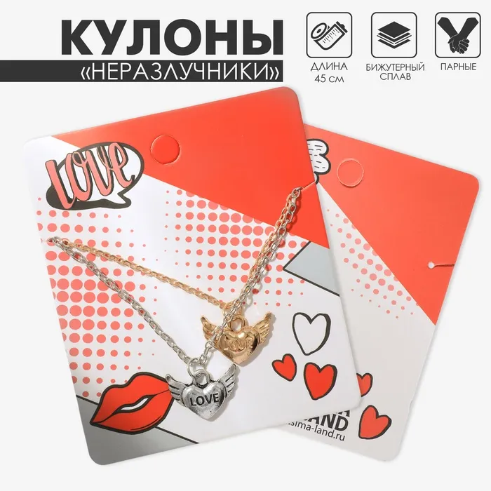 Кулоны парные на цепочке «Сердечки», 45 см, цвет серебряный, золотой — Характеристики
