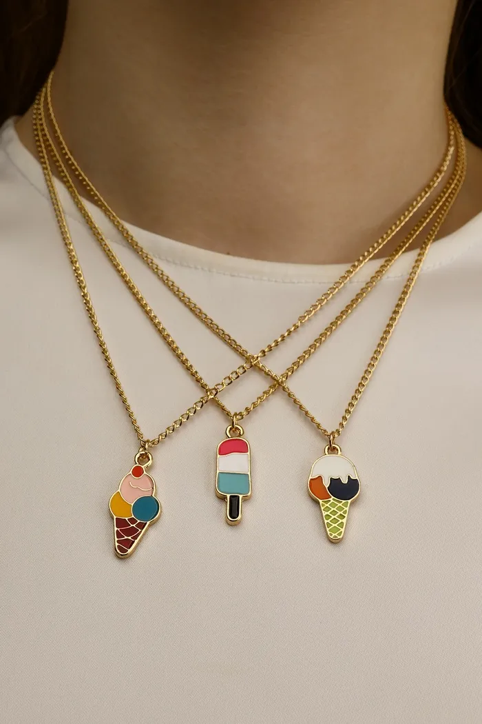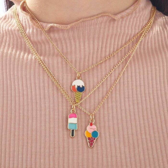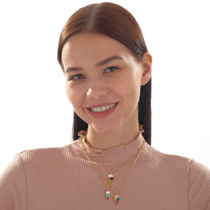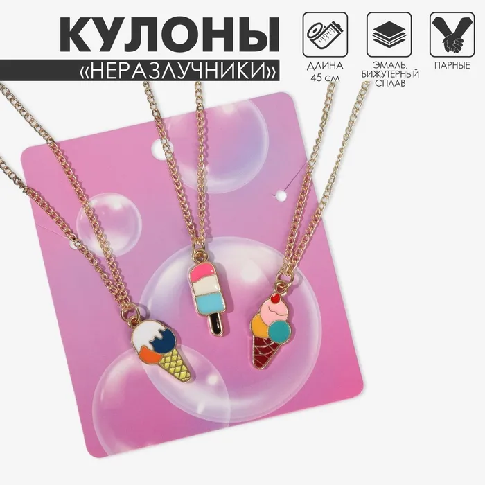 Кулоны парные на цепочке «Виды мороженого», 45 см, цветные в золоте — Характеристики