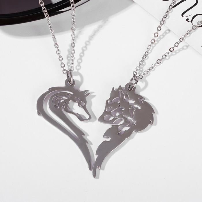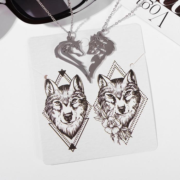 Кулоны парные на цепочке «Волк и волчица», цвет серебро, 45 см