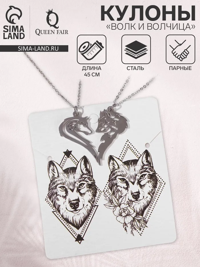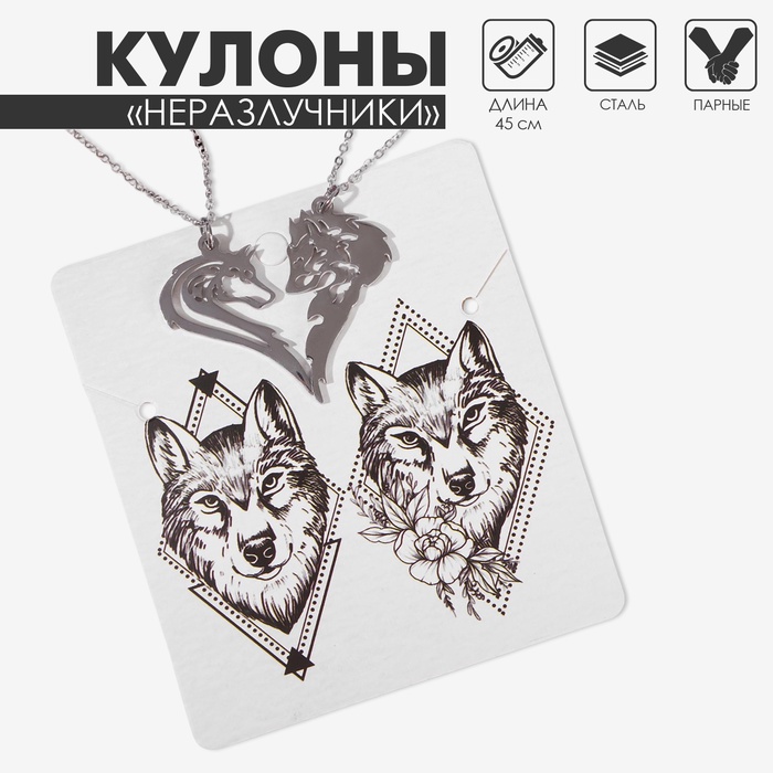 Кулоны парные на цепочке «Волк и волчица», цвет серебро, 45 см — Характеристики