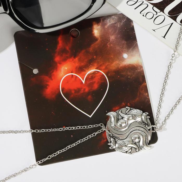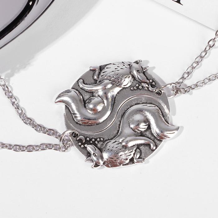 Кулоны парные на цепочке «Волки инь-ян», 45 см, цвет серебро