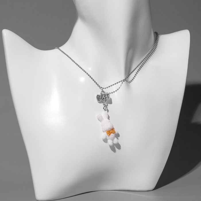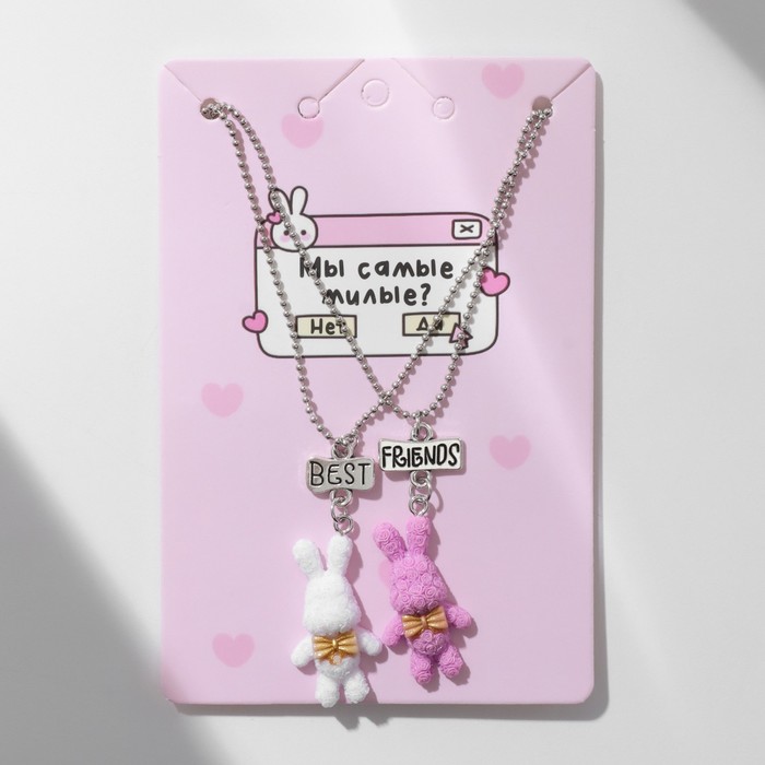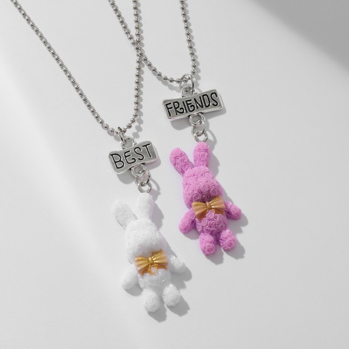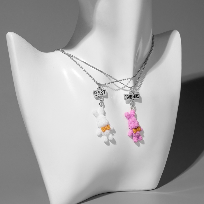 Кулоны парные на цепочке «Зайцы», бело-розовые в серебре, 40 см