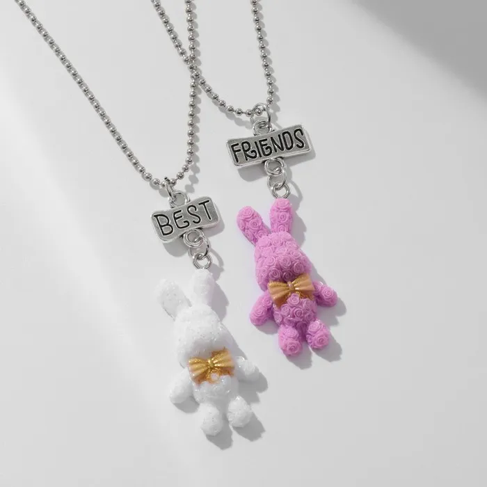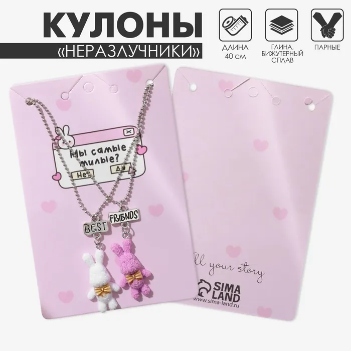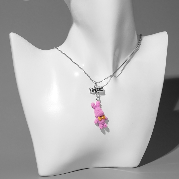 Кулоны парные на цепочке «Зайцы», бело-розовые в серебре, 40 см — Характеристики