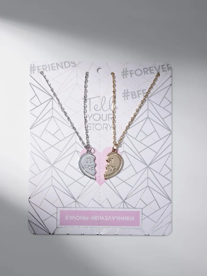 Кулоны парные «Неразлучники», лучшие друзья, цвет серебристо-золотой, 45 см — Характеристики