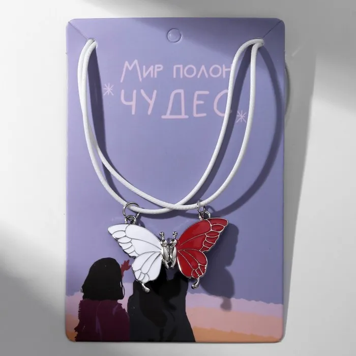 Кулоны парные «Неразлучники» на магните, бабочка яркая, бело-красные в серебре, 45 см — Характеристики