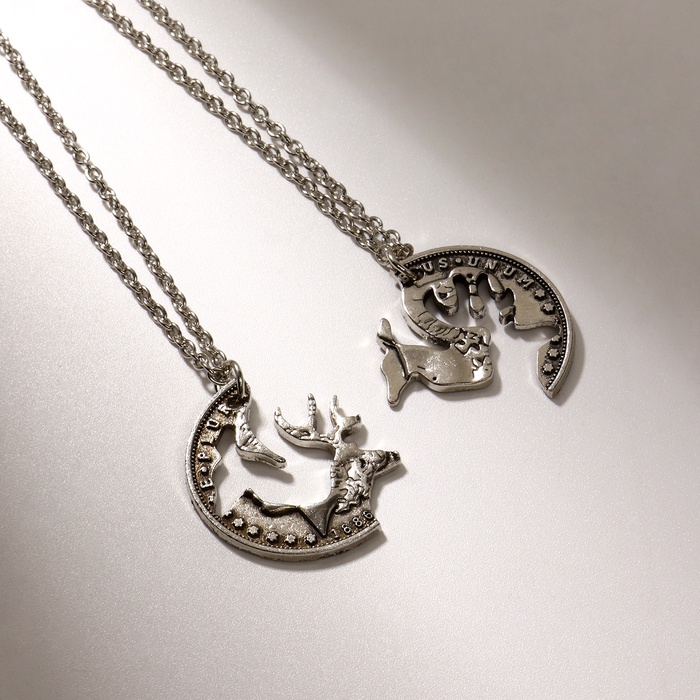 Кулоны парные «Новогодние олени», 45 см, цвет чернёное серебро — Характеристики
