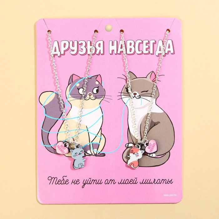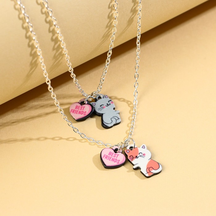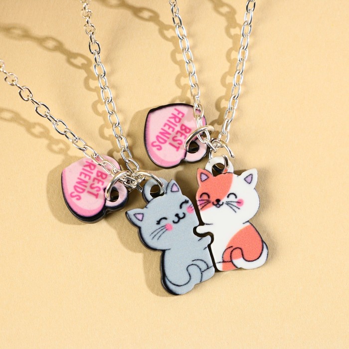 Неразлучники с цепочкой на шею и подвеской в виде котов лучшее выражение чувств для подруг, лучших друзей, влюбленных пар ,символ крепкой дружбы .