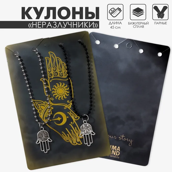 Кулоны парные «Рука хамса», 45 см, цвет чёрный/серебряный — Характеристики
