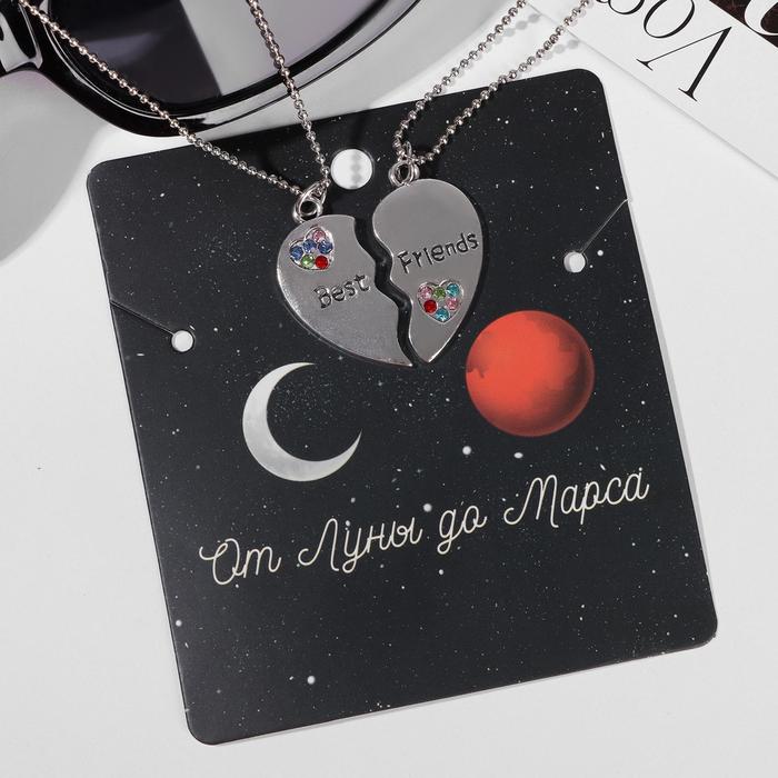 Кулоны парные «Сердце с камешками», 45 см, цветные в серебре — Характеристики