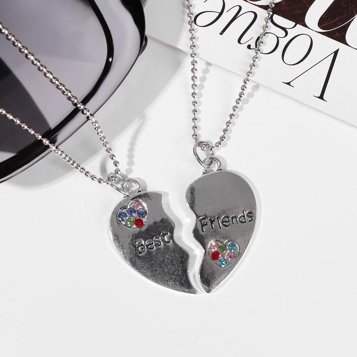 Кулоны парные «Сердце с камешками», 45 см, цветные в серебре