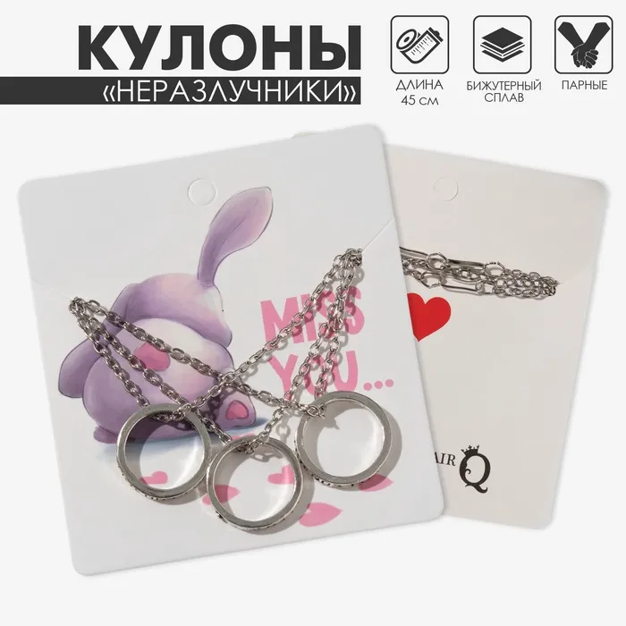 Кулоны парные «Три кольца», 45 см, цвет серебро — Характеристики