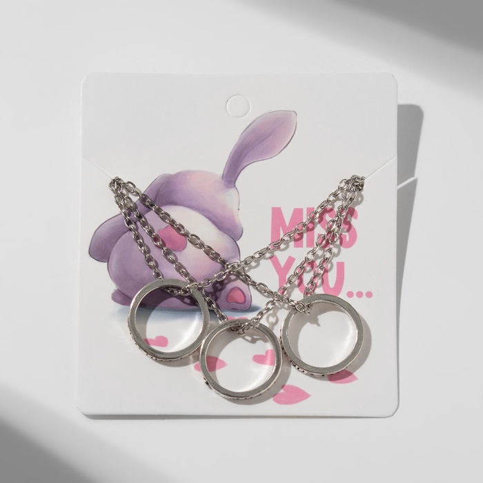 Кулоны парные «Три кольца», 45 см, цвет серебро