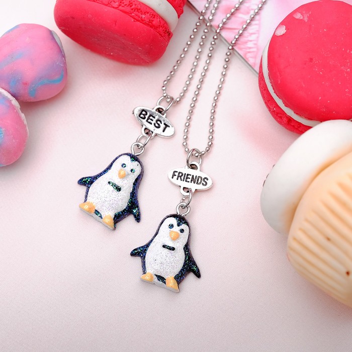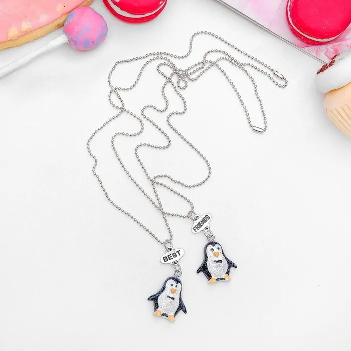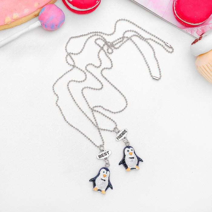 Кулоны парные "Выбражулька" неразлучники, пингвинчики, 2 цепочки 45 см, цвет чёрно-белый — Характеристики