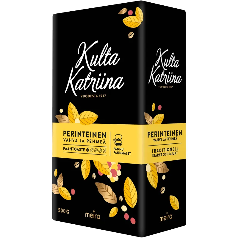 Перечисленные Кофе Kulta Katriina – это классический выбор с утонченным ароматом. Его тщательно разработанный рецепт включает в себя лучшие сорта кофе со всего мира, что придает напитку уникальный крепкий и мягкий вкус. Степень обжарки: 1 из 5. Формат: молотый кофе. Упаковка: 500 г.