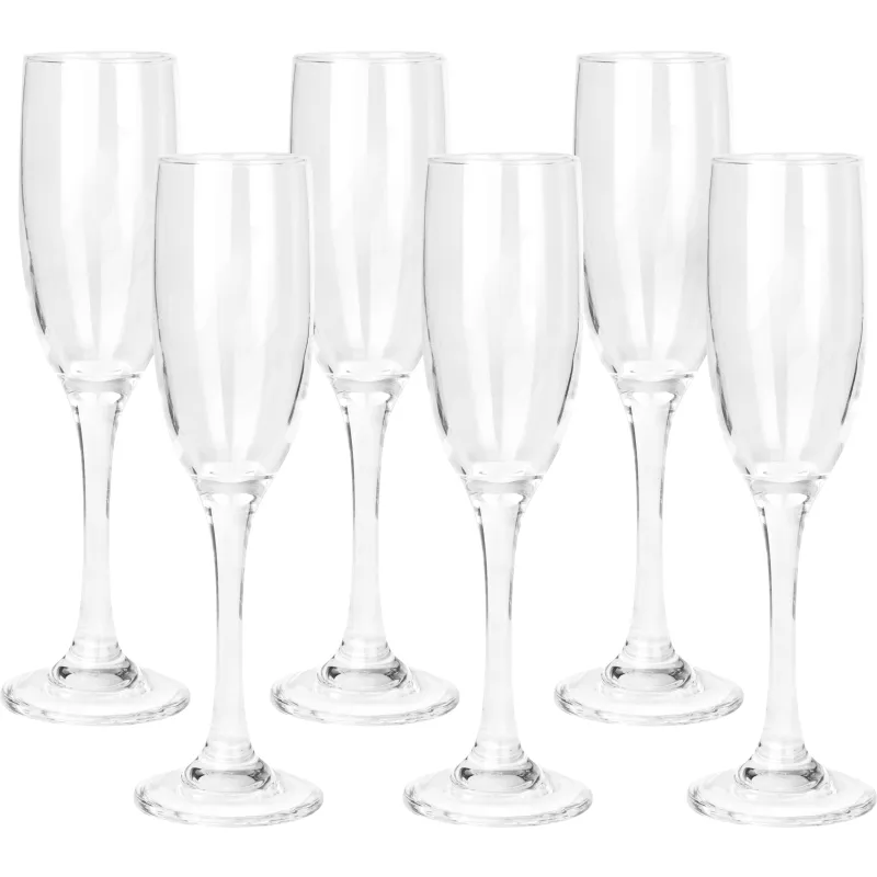 Набор бокалов для шампанского включает 6 бокалов, идеально подходящих для торжественных моментов. Объем каждого бокала составляет 170 мл, материал — стекло. Бокалы можно мыть в посудомоечной машине, что обеспечивает удобство в использовании.